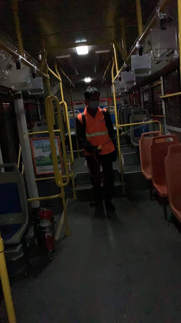 一是及時(shí)為全體駕駛員配發(fā)醫(yī)用口罩。配備540瓶消毒液,對營運(yùn)車輛進(jìn)行消毒,特別是對乘客接觸較多的扶手以及座椅、地板、投幣箱等部位進(jìn)行重點(diǎn)消毒清潔,不留一處死角。建立車輛衛(wèi)生消毒臺賬,詳細(xì)記錄每日工作數(shù)據(jù),確保消毒工作落實(shí)到位。