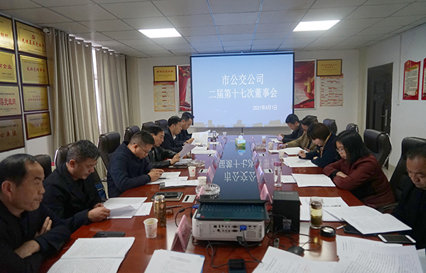 4月1日,市公交公司召開2021年第一次股東會(huì)暨二屆十七次董事會(huì),公司全體股東、董事會(huì)成員參加會(huì)議,監(jiān)事會(huì)、審計(jì)監(jiān)督組成員、紀(jì)委書記列席會(huì)議。公司董事長(zhǎng)張曉強(qiáng)主持會(huì)議。