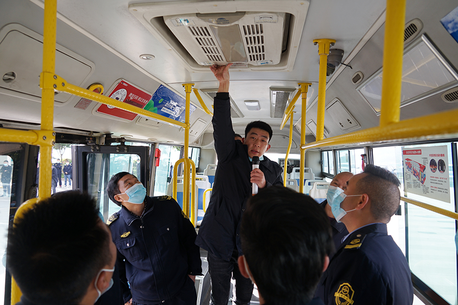 本次活動分為消防安全知識培訓(xùn)、公交車靜態(tài)安全和動態(tài)安全演練三個部分。